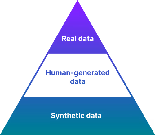 To understand why Tonic.ai stands apart, it helps to look at the data landscape as a pyramid. At the very top is real‑world data which is finite, expensive, and increasingly difficult to source. Most of human knowledge has already been consumed by LLMs, which makes enterprise data increasingly more desirable. However, there is only a limited amount of genuine production data that exists, and it comes with strict privacy and compliance constraints that make acquiring and using it challenging.