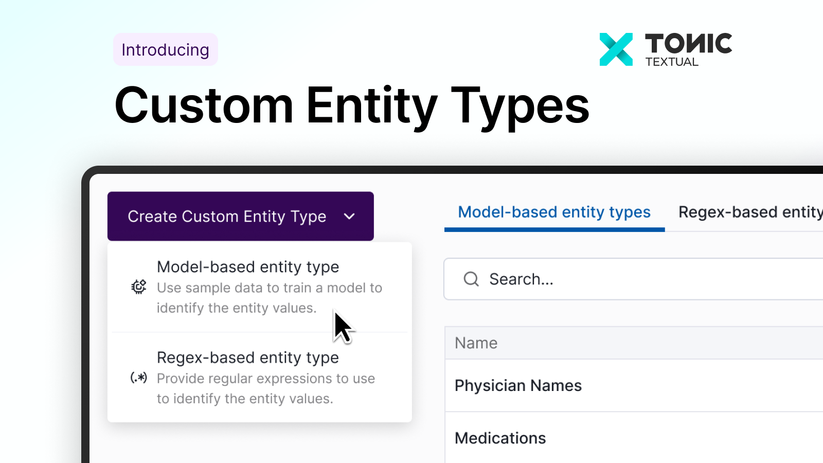 Today, we’re excited to introduce Custom Entity Types, a new capability in Tonic Textual that gives every organization the power to create their own entity detection models through a simple point-and-click interface—no specialized machine learning expertise required.