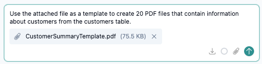 You can prompt the Data Agent to create a collection of unstructured files based on the generated data. To help ensure that the resulting files meet your needs, you can optionally attach a template file for the Data Agent to work from.