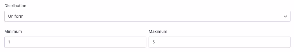 Next up is Uniform distribution. Instead of a fixed number of references, the Uniform distribution causes Fabricate to use each row a number of times that is within a specified range.