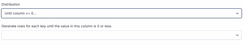 For the From Column distribution, from the column dropdown list, select the column in the referenced table that contains the number of times to use the row.
