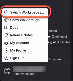 Click the user menu at the bottom left, then click Switch Workspaces.
