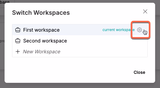 On the Switch Workspaces panel, hover the mouse over the workspace, then click the settings icon.